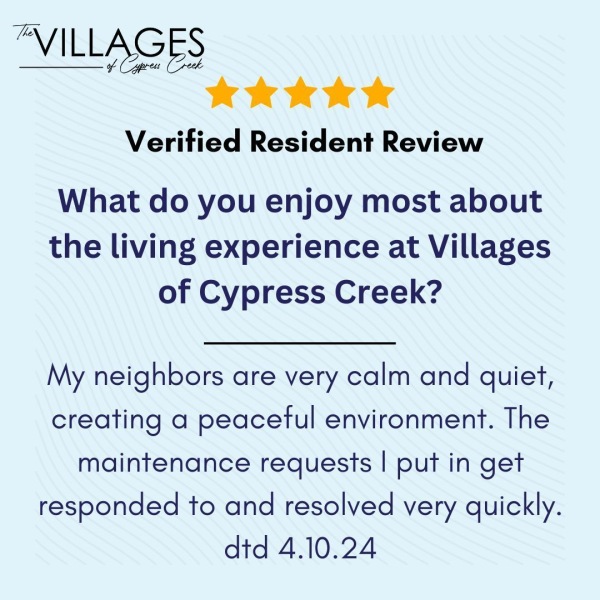 Your dream lifestyle is waiting at The Villages at Cypress Creek – so you shouldn’t wait any longer to join our modern community, designed with all the essentials and extras on your wish list. That includes a multifunctional clubhouse, a cybercafé, a resort-style pool, and other perks you’ll discover on our website. Besides, if you’re looking for a vibrant neighborhood to go with your new home, our apartments in Cypress, TX, are the right choice. Located near Willowbrook Mall and Matzke Park, plus a 30-minute drive from downtown, this address is worth your attention. Keep reading to learn more!